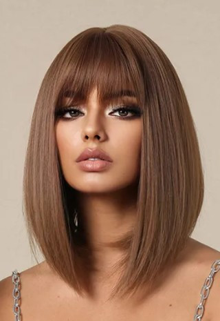 Перука каре коричнева темно-русява з чубчиком термоперука (LC1052-2)